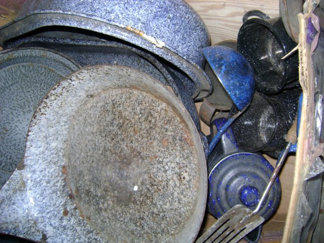 enamel bowls and ladels